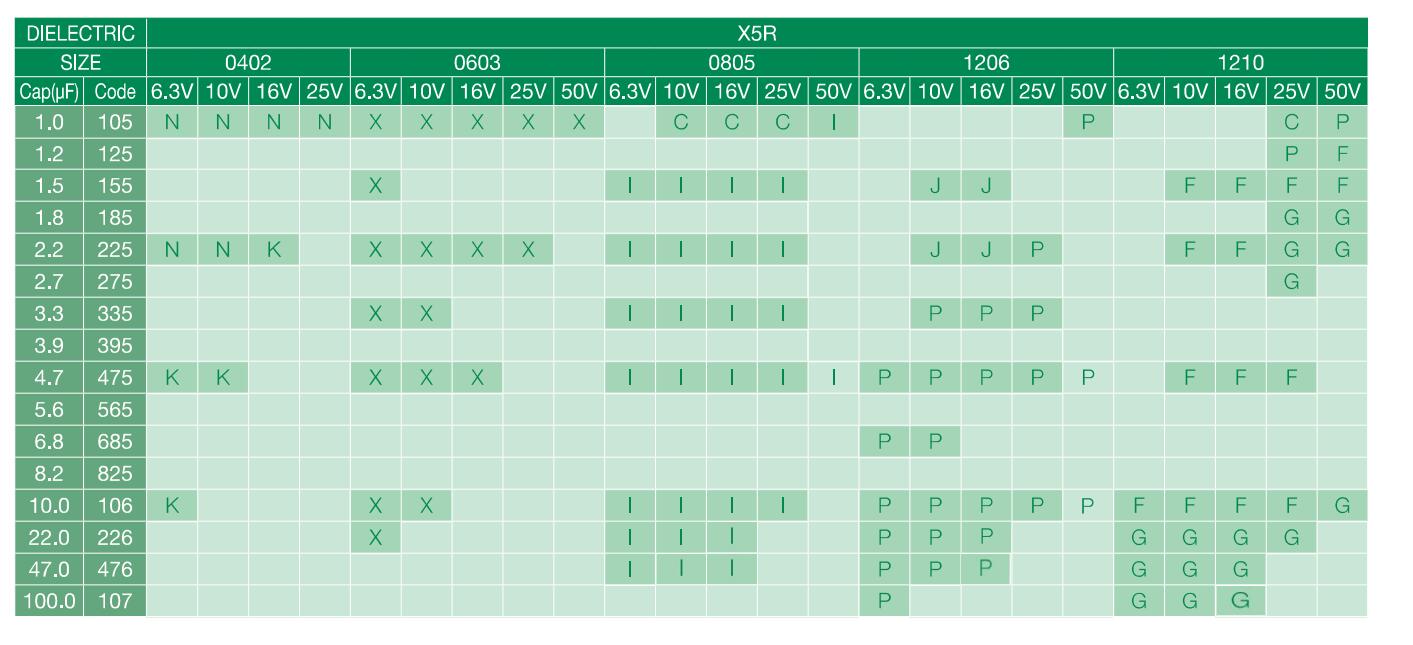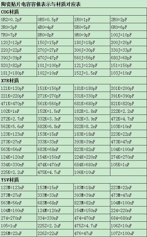 - 1R0:表示容量为1.0pF。同样,“R”代表小数点,容量为1.0pF。